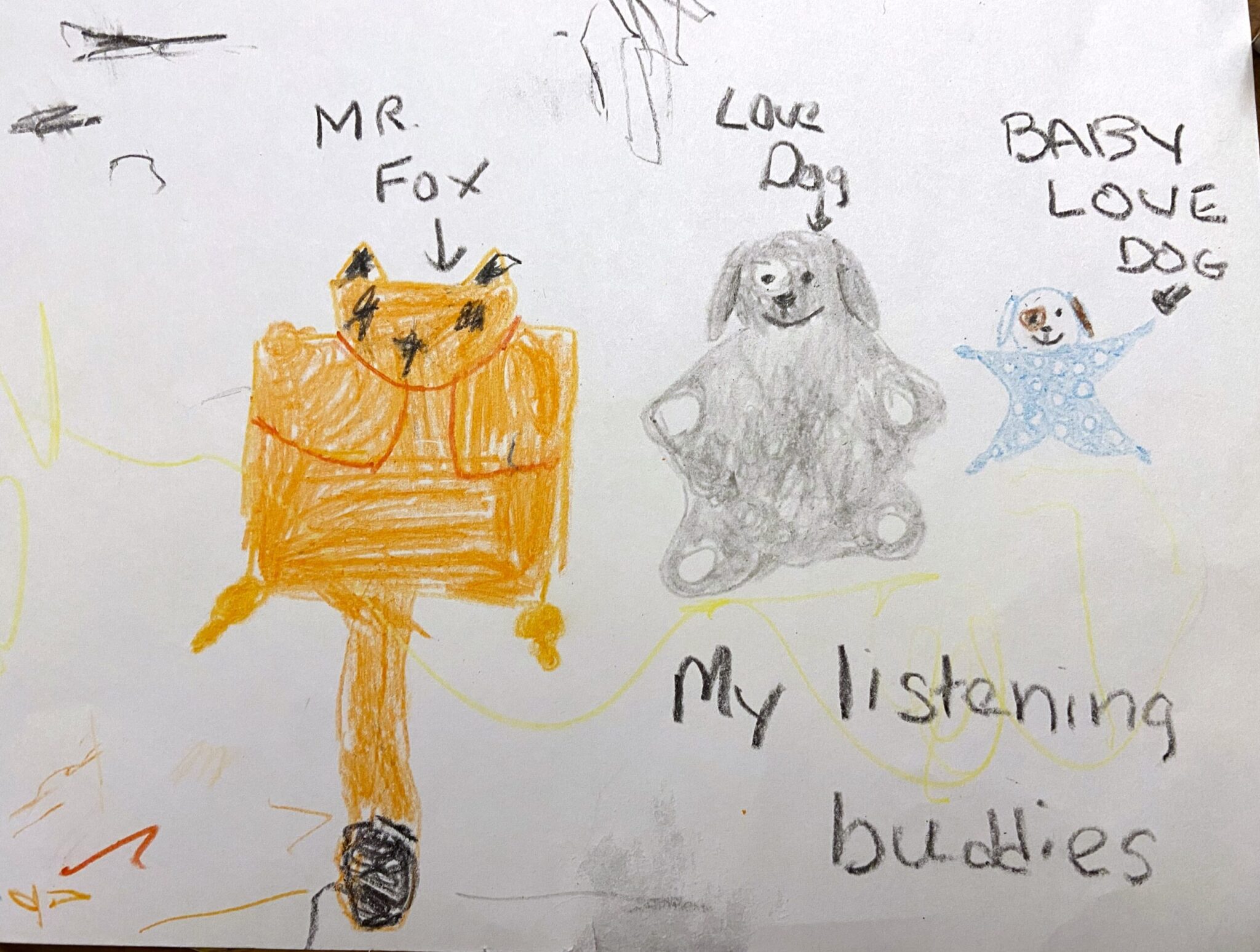 We hope you enjoy these artistic depictions of our listeners’ and our creative team’s Listening Buddies!